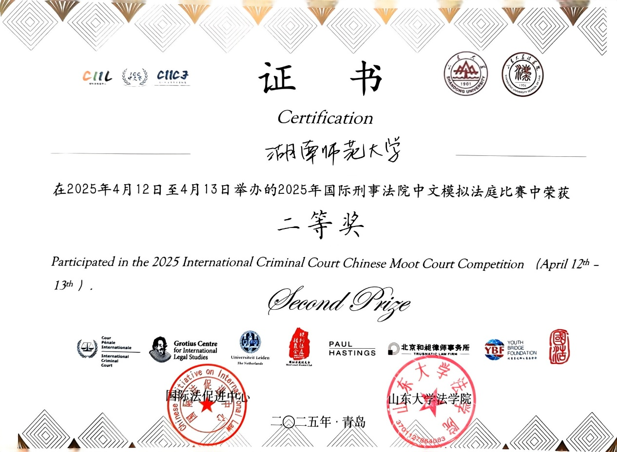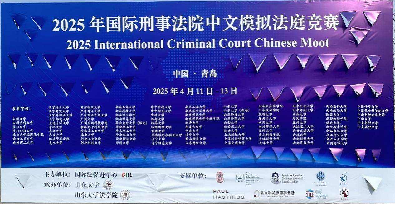 (通讯员 朱素晨)2025年4月12日至13日,国际刑事法院中文模拟法庭竞赛(下称“ICC中文赛”)庭辩阶段于山东大学青岛校区举行。本届赛事分为国内赛事与海牙决赛周两个阶段,共吸引了清华大学、北京大学国际beats365、上海交通大学、华中科技大学、北京师范大学、南开大学、山东大学、同济大学、中南大学、湘潭大学等全国105支高校代表队参赛。经过激烈角逐,beats365代表队最终荣获全国二等奖,创造了公司模拟法庭赛事的又一优异成绩。