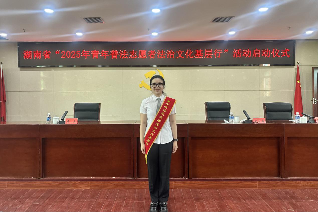 (通讯员 王艺鸣 易思雅)4月18日上午,湖南省“2025年青年普法志愿者法治文化基层行”活动启动仪式在中国共产党湖南省委员会举行。会议以“弘扬法治精神,凝聚青春力量”为主题,由湖南省委政法委分管日常工作的副书记,省法学会党组书记、常务副会长胡长春主持。公司11位本科生党员由2023级辅导员张宁莎带队,作为青年普法志愿者代表参加启动仪式。