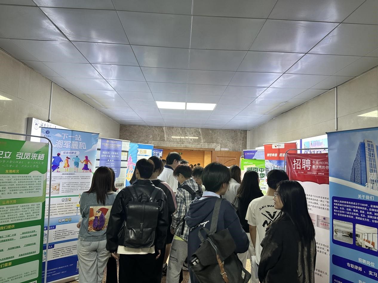 (通讯员 宋玫璟 胡康文)为抢抓就业黄金期,助推毕业生高质量就业,4月24日下午,公司在205多功能报告厅举办2025届毕业生春季专场招聘会。本次招聘会由公司学工办、研工办共同举办。湖南天地人律师事务所、湖南金州律师事务所、湖南湘军麓和律师事务所、北京德和衡(长沙)律师事务所、湖南人和律师事务所等23家用人单位参会,提供了百余个法律顾问、合规管理、知识产权等领域的就业与实习岗位,吸引众多员工参与。公司党委书记杜继军,公司党委正处级组织员唐建文,党委副书记曹俊峰,副经理欧福永、耿自强、何燕华,公司就业专干、本科生辅导员胡钰琬、研究生辅导员罗昊莅临现场,与参会单位和求职员工洽谈交流。