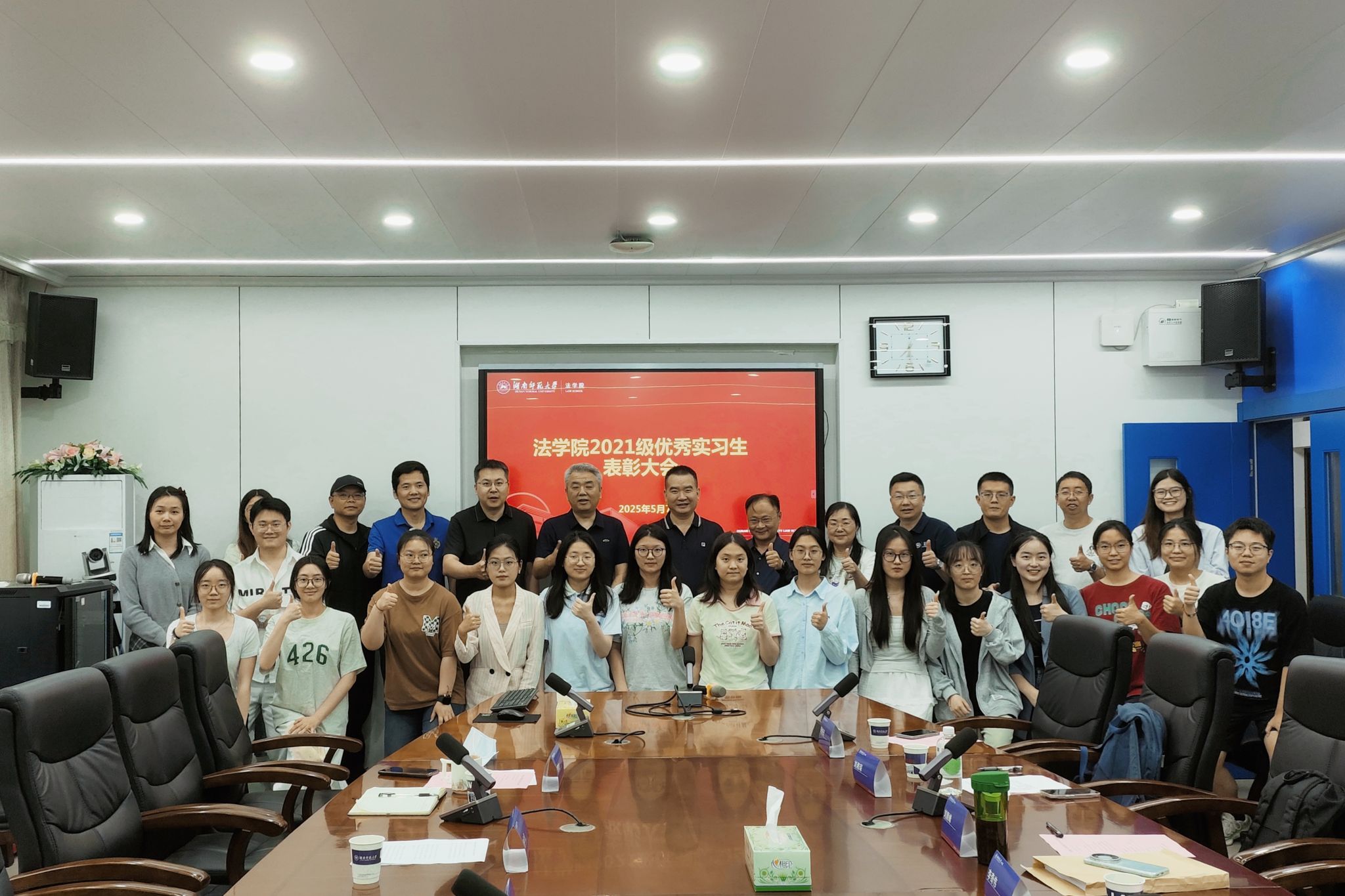 (通讯员 范峥 梁延喆)5月7日下午,公司在304会议室举办2021级优秀实习生表彰大会。湖南芙蓉律师事务所主任陈平凡,公司党委书记杜继军,副书记曹俊峰以及实习带队教师周俊光、刘湘琛、刘顺峰、李奇伟、陆强、周泽中、尤婷,教务办主任阎英,学工办老师许华燕,十六名优秀实习生共同参会,会议由公司副经理周刚志主持。