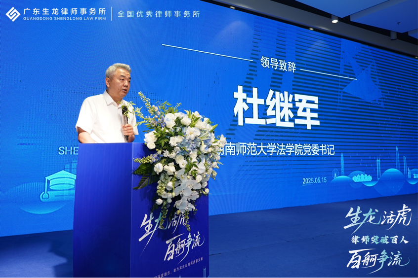 杜继军在致辞中表示,此次合作是法学教育与法律实务的深度融合,公司将坚持党建引领,锚定高质量发展目标,搭建“律产研”一体化平台,构建“湖南-大湾区-海外”法治人才培养体系,锻造具备全球视野的复合型涉外法治人才,为企业合规出海提供专业支持,赋能法治化营商环境建设。