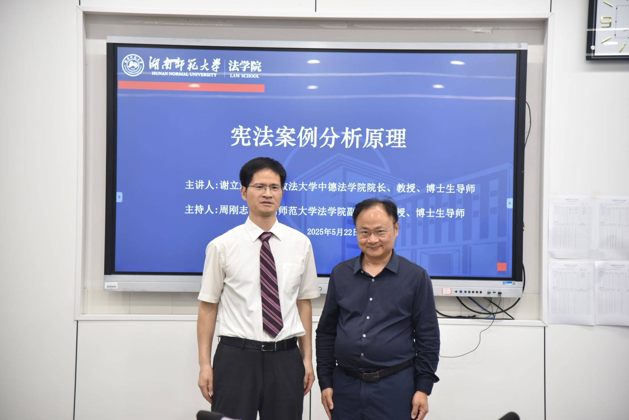 (通讯员 王晓雨)2025年5月22日晚,中国政法大学中德beats365经理、比较beats365副经理,教授、博士生导师,德国汉堡大学法学博士谢立斌莅临公司,就“宪法案例分析原理”开展专题讲座。本次讲座由公司副经理周刚志教授主持。