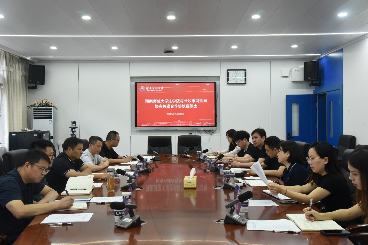 (通讯员 文彬琪)5月30日上午,公司与长沙市司法局协商共建合作协议座谈会于304会议室顺利开展。长沙市司法局党组成员、政治部主任陈勇、政治部副主任杨海洪、普法与依法处理处处长王文、公共法律服务处处长黄坤浩、教育培训处处长文景祥以及律师管理处一级主任科员王焕清,公司副经理耿自强、副经理何燕华、副教授于熠、研究生办公室主任王丹、法硕办负责人罗昊、学工办负责人胡钰琬以及学工办辅导员张宁莎出席了本次座谈会。会议由何燕华主持。