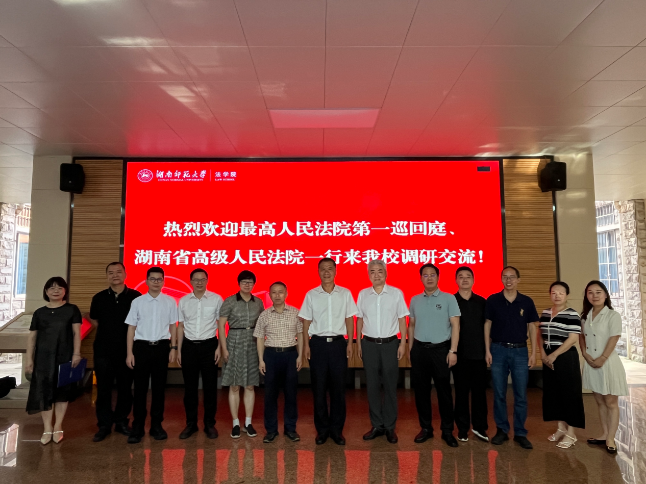 (通讯员 谭若茹)为进一步深化卓越法治人才培养,推动法学教育与司法实践深度融合,7月4日下午,最高人民法院第一巡回法庭、湖南省高级人民法院领导一行来公司调研座谈。公司党委委员、副董事长杨震出席会议并致辞。最高人民法院第一巡回法庭分党组成员、党务廉政专员、二级巡视员高福军,第一巡回法庭综合办公室副主任、一级调研员梁欣、第一巡回法庭综合办公室干部郑艺军,湖南省高级人民法院政治部组织干部处处长曾利民、立案信访局信访办公室主任曾群山,beats365公司党委书记杜继军,十四届全国人大代表、公司二级教授肖北庚、副经理欧福永、何燕华,教授王葆莳,副教授黄文旭,以及教务办主任阎英、研究生办主任王丹参加会议。会议由杜继军书记主持。