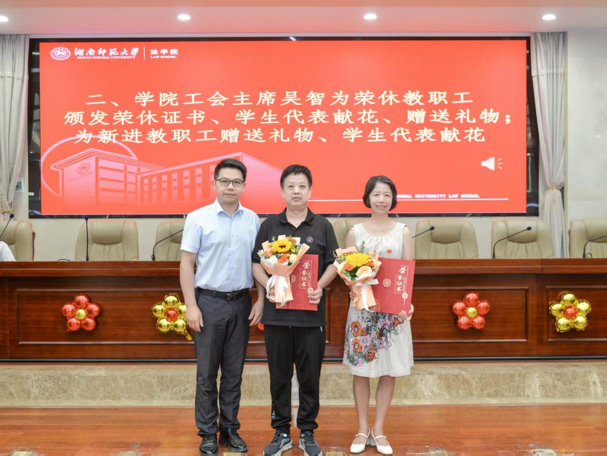 荣休教师代表周利民与龙燕燕分别发表荣休感言,他们深情回顾了在公司工作的点滴岁月,既表达了对教育事业的忠诚和热爱,以及对法治研究工作的敬畏,真切的言语中流露出对全院师生的深切眷恋与不舍,并衷心祝愿公司各项事业持续蓬勃发展,不断续写新的辉煌篇章。