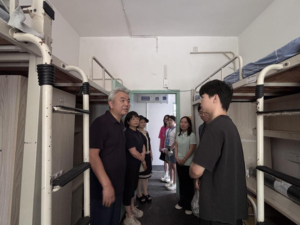 公司党委书记杜继军、副经理何燕华、研究生办工作室主任王丹、辅导员老师罗昊、教师代表姚迪、刘翱一行人慰问了迎新现场的工作人员,对公司细致化、暖心化的迎新服务给予肯定。随后,一行人前往新生宿舍,实地查看住宿环境,与新生、家长亲切交流,关切询问新生生活需求,认真听取家长对后勤保障的意见。他们还提出要尽快适应研究生学习节奏,既要潜精研思做学问,也要平衡学习与休息,院领导与公司老师的殷切叮嘱,让新生和家长倍感安心。