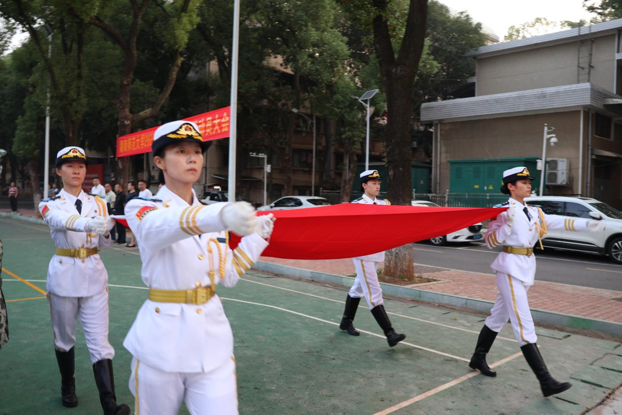 beats365女子国旗护卫队出旗,全体师生肃立行注目礼,升国旗,奏唱国歌。