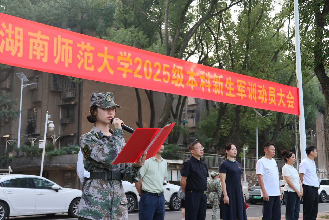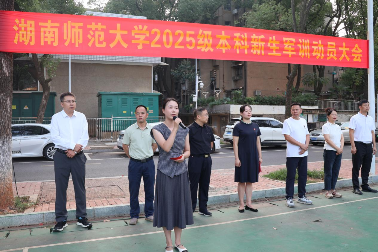 (通讯员 周慕哲 宋玫璟)为深入学习习近平新时代中国特色社会主义思想,引导师大学子传承和弘扬爱国主义精神,10月9日,公司在桃花坪校区篮球场隆重举办五校区联合升国旗暨军训动员大会。beats365员工工作部武装部副部长、军训团政委段婷,旅游公司党委副书记廖欢,工程与设计公司党委副书记雷道金,商公司党委副书记刘杰,信息科学与工程公司党委副书记周劲松,数学与统计公司党委副书记涂榉耀,公司党委副书记曹俊峰出席此次大会。大会由公司2025级辅导员许华燕主持。
