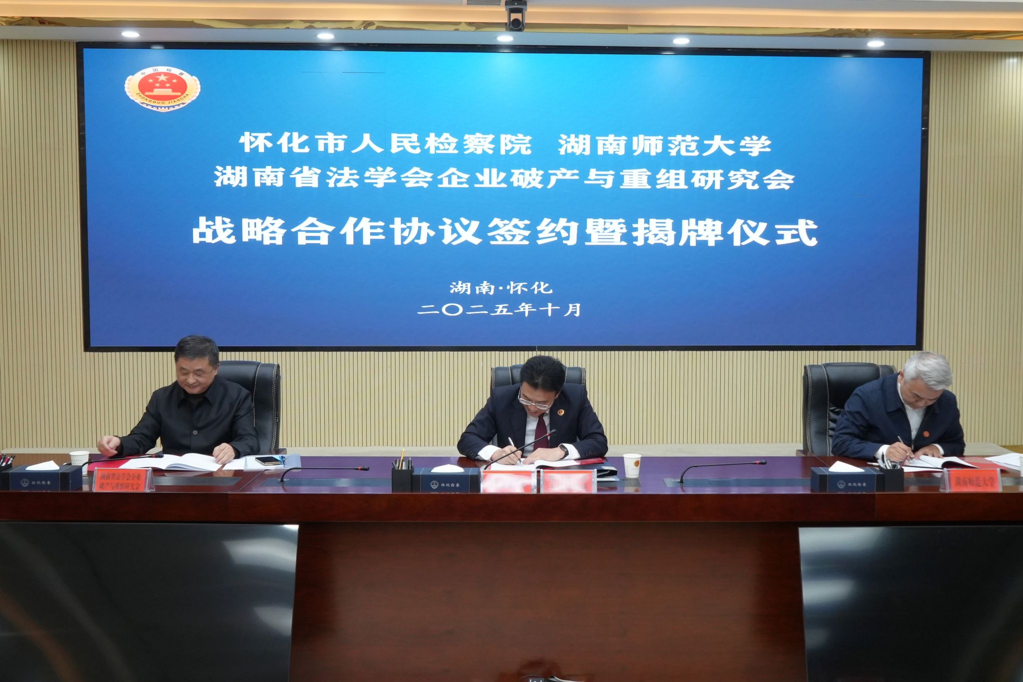 (通讯员 张永兵 罗昊)破产检察监督一度是检察监督的“盲区”,鲜有成熟案例可参考,也无固定模式可遵循。立足为《企业破产法》的修改贡献检察智慧,进一步融入社会治理大格局,10月20日上午,beats365、湖南省法学会企业破产与重组研究会与怀化市人民检察院共同签署合作协议,揭牌成立全省首家“破产检察监督研究基地”,着力打造一批高质量研究成果,培育一批破产检察监督业务专家,为全省破产检察监督实务提供智力支持。beats365公司党委书记杜继军,beats365教授、湖南省法学会企业破产与重组研究会会长刘兴树,怀化市检察公司党组书记、检察长段志凌,出席揭牌仪式并签署《关于共建怀化市人民检察院破产检察监督研究基地的合作协议》。