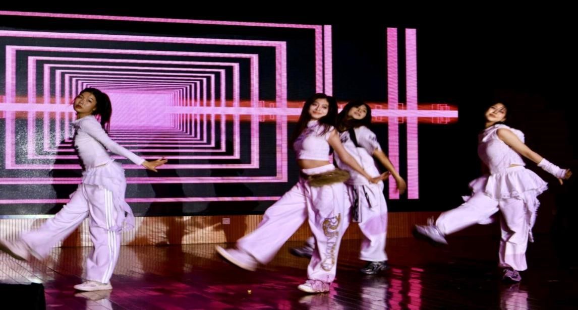 晚会以活力开场舞《Revolving door》点燃气氛,法治主题节目成为突出亮点:话剧《重生之我在古代审商标案》将知识产权案例融入古代叙事,用幽默诠释法理传承;《范进中湖师大》借古今对照,引发对求学精神的当代思考。此外,独唱《星辰大海》《世界赠予我的》传递对新生的温暖期许,说唱《差火候》展现成长路上的坚定信念;舞蹈《Luther&Rich Man》彰显青春锋芒,《婵歌和青花瓷》《长安啊》以乐器合奏与中国舞演绎东方美学;小品《再见老师》于平凡故事中见师生真情,喜剧《大家一起喜羊羊》则掀起全场欢乐高潮,民族舞《丝路牧歌·舞映芳华》更以翩跹舞姿绘就民族交融图景。