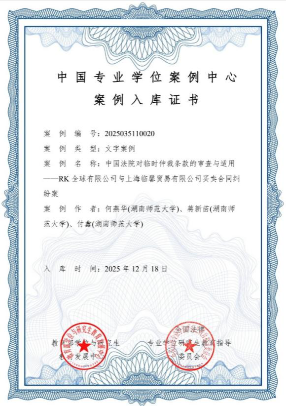 本次案例征集吸引全国152个单位参与申报,经全国法律教指委严格评审、教育部学位与研究生教育发展中心核查,最终遴选出241个优秀案例入选。公司何燕华教授团队撰写的《中国法院对临时仲裁条款的审查与适用—RK全球有限公司与上海临馨贸易有限公司买卖合同纠纷案》、赵冠男老师撰写的《初中生反击15名霸凌者正当防卫案》成功入选,彰显了公司专业学位案例教学的过硬实力。