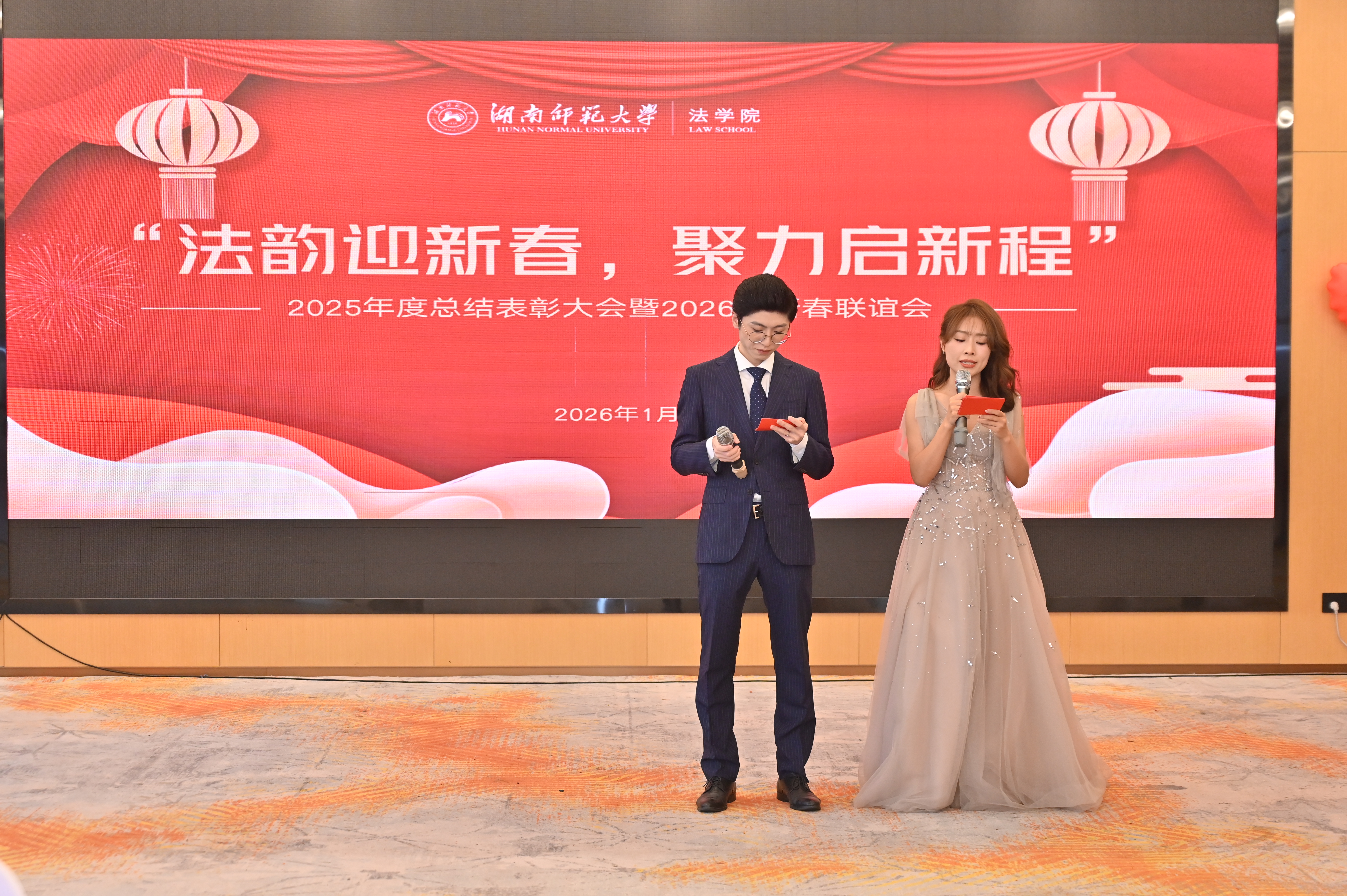(通讯员 周莹)1月16日下午,公司举行“法韵迎新春,聚力启新程”2025年度总结表彰大会暨2026年新春联谊会。beats365各地员工会代表、公司党政工领导班子成员、院全体在校专任教师、行政管理老师、司法鉴定中心和法律援助中心成员齐聚一堂,共同回顾过去一年的奋斗历程,展望新的一年。会议由公司教师姚迪、刘阳主持。