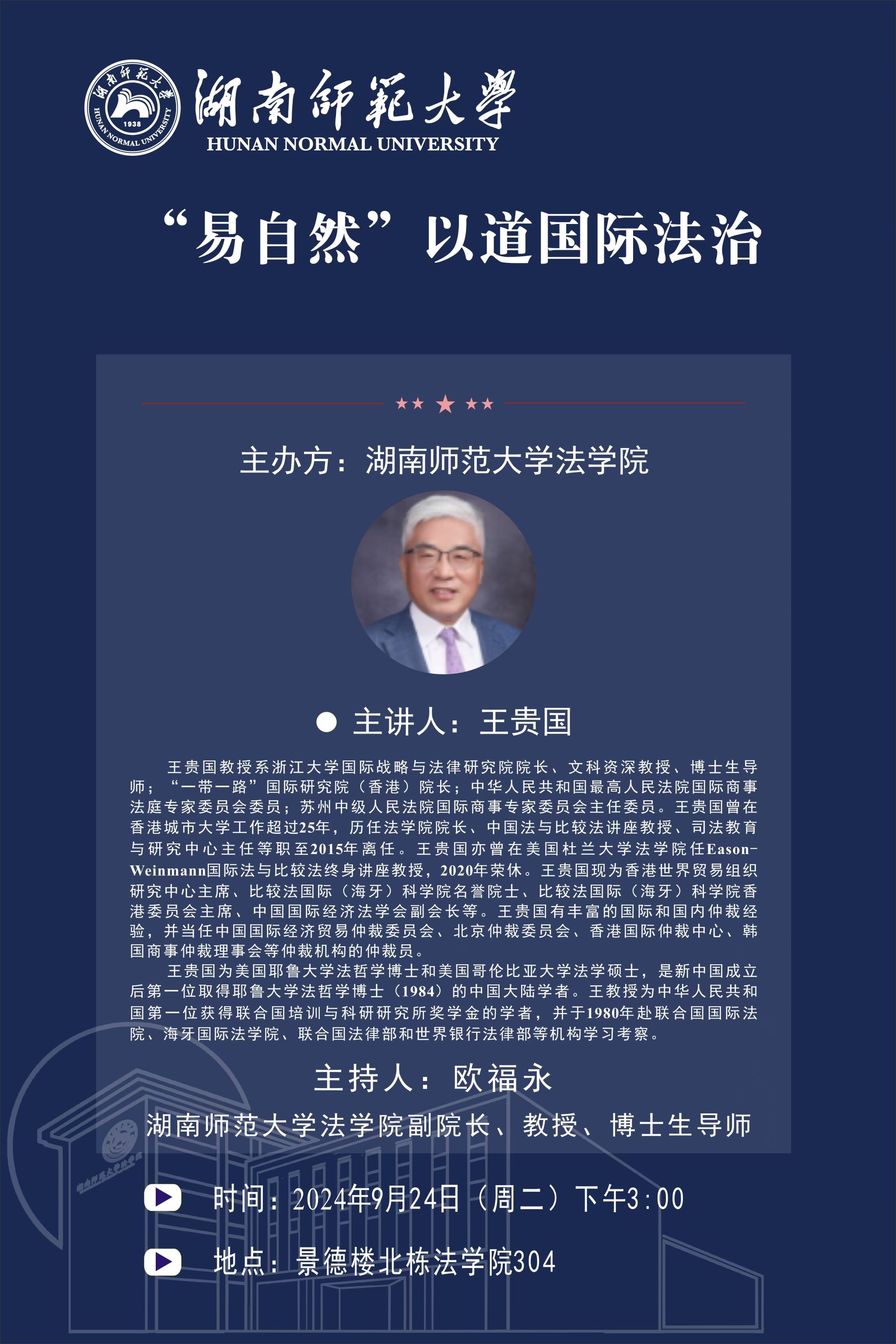 讲座主题:“易自然”以道国际法治