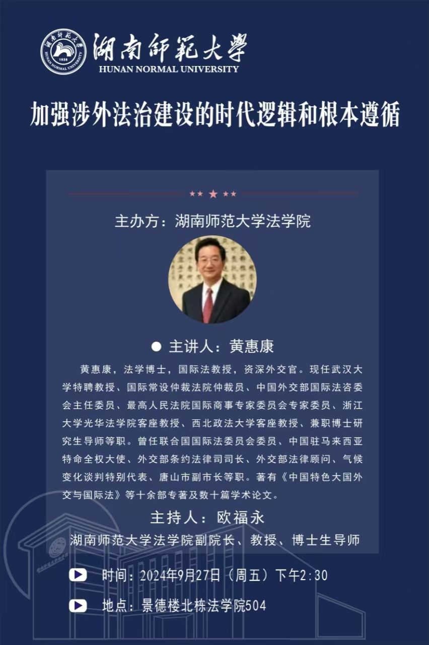 讲座主题:加强涉外法治建设的时代逻辑和根本遵循