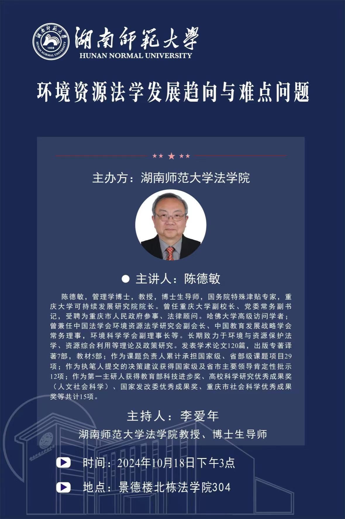 讲座主题:环境资源法学发展趋向与难点问题