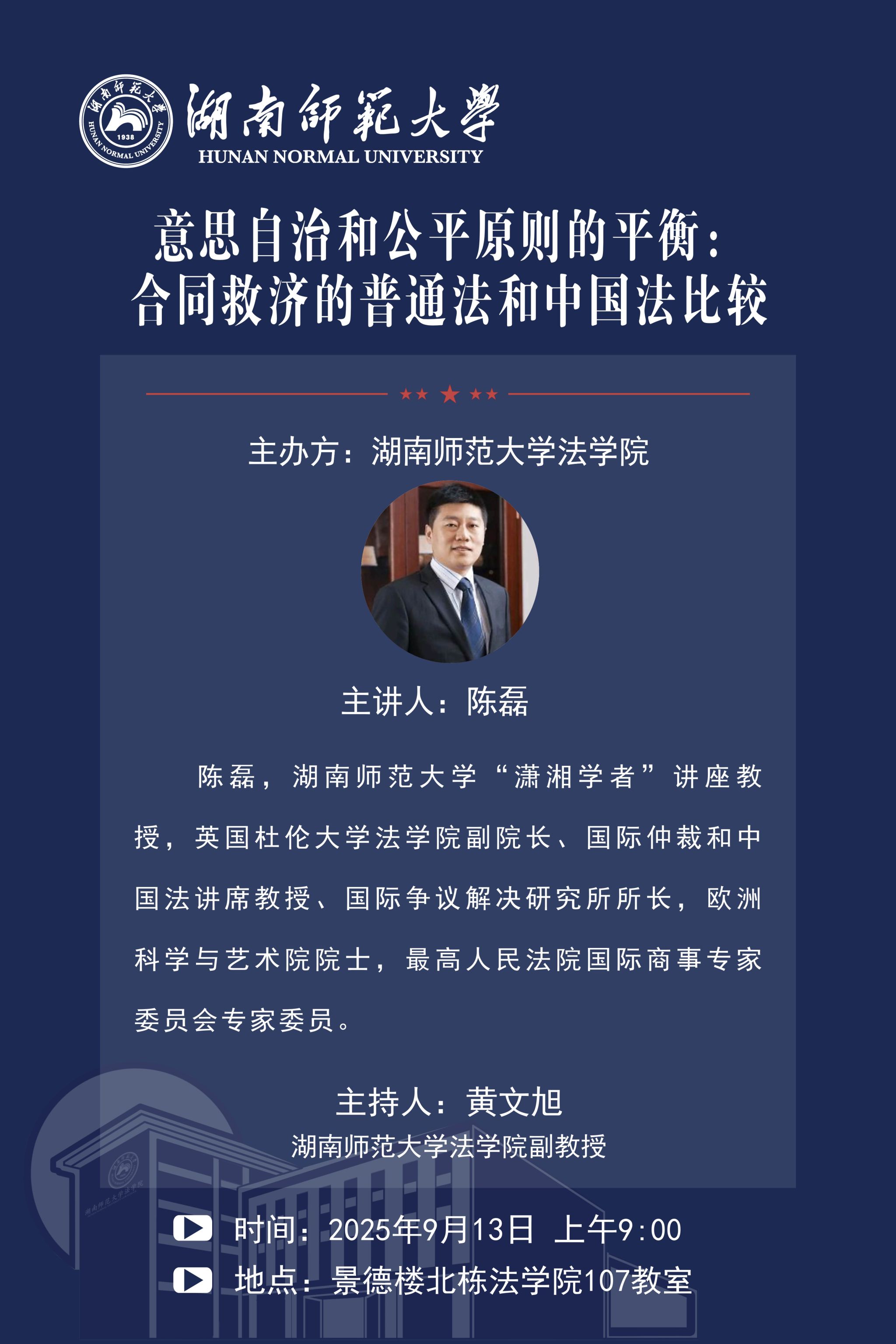 讲座主题:意思自治和公平原则的平衡:合同救济的普通法和中国法比较