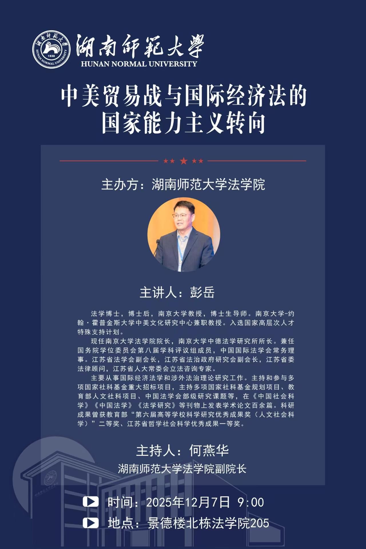 讲座主题:中美贸易战与国际经济法的国家能力主义转向