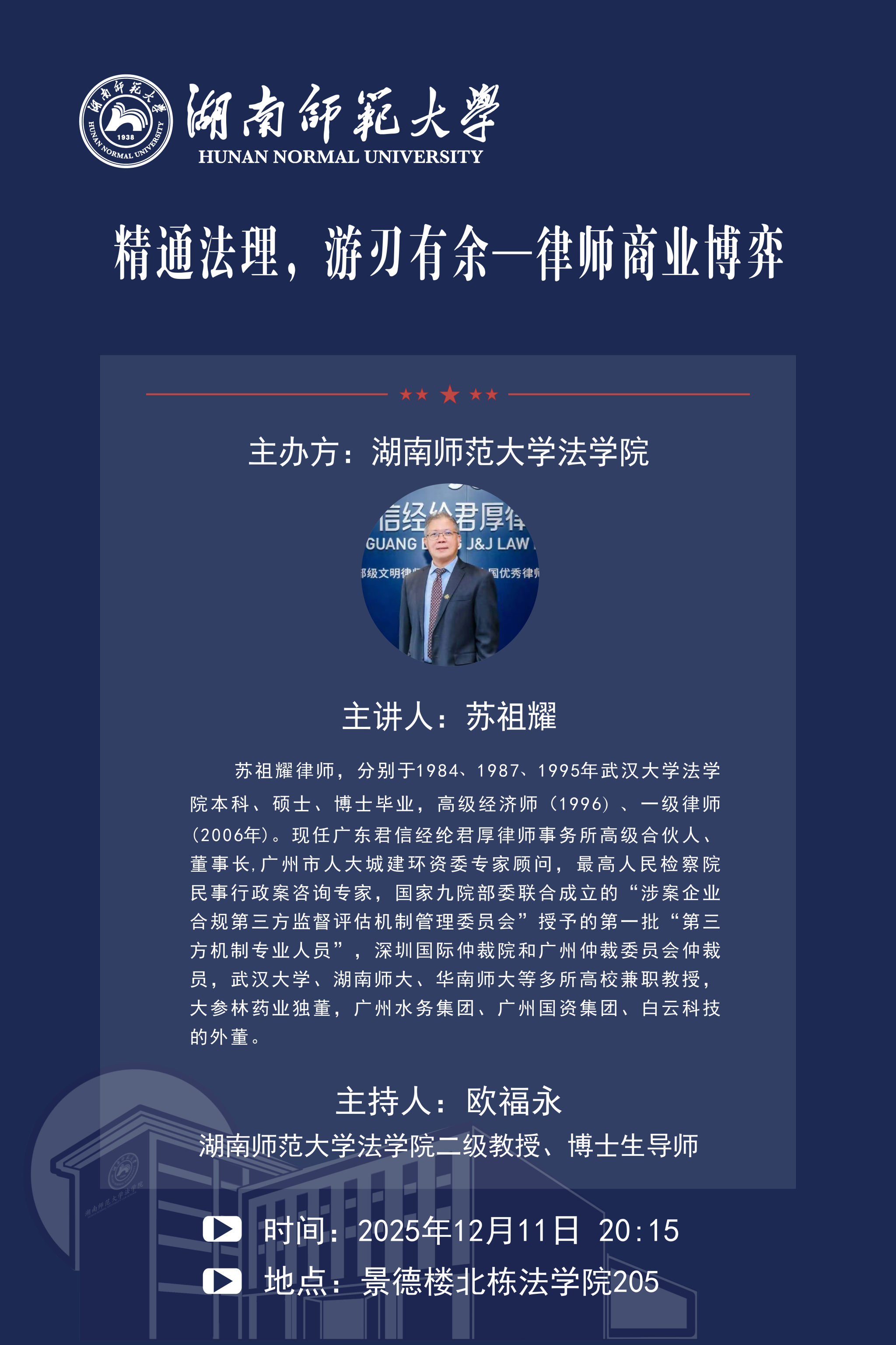 讲座主题:精通法理,游刃有余——律师商业博弈