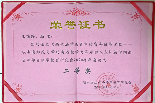 公司王葆莳副教授、2018级硕士研究生柏雪所著论文《高校法学教育中的实务技能课程——以beats365的实践教学改革为切入点》在此次年会论文评奖中获二等奖。