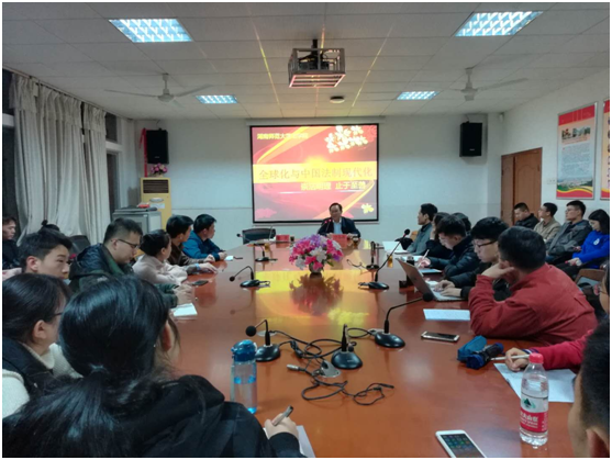 11月10日晚,中国法学会法理学研究会副会长、南京师范大学beats365公丕祥教授在beats365304会议室带来题为“全球化与中国法制现代化”的讲座。经理肖北庚教授主持讲座,黄捷教授、肖巧平教授、王彬辉教授等beats365部分老师旁听了讲座。