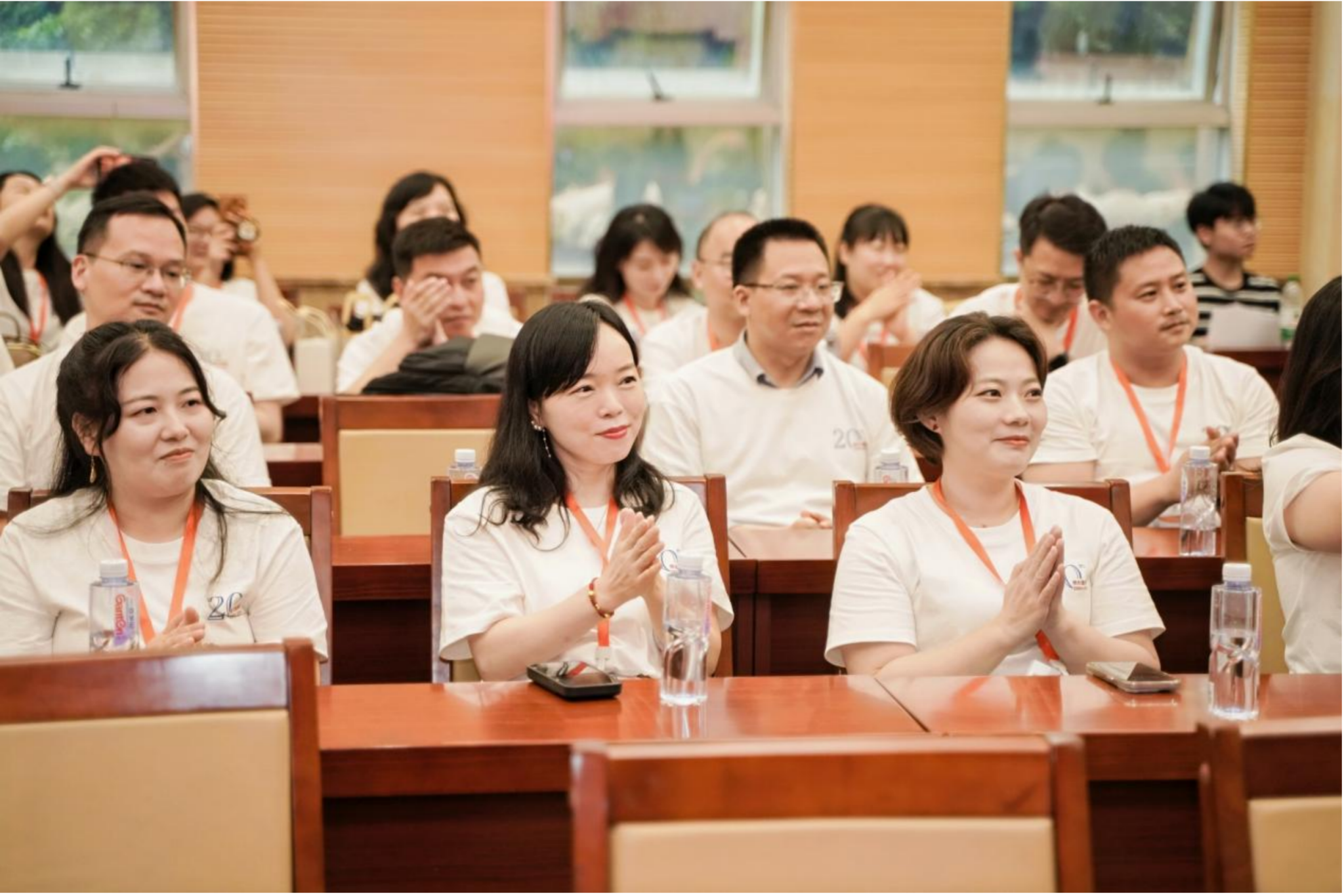 法律系2000级毕业生的任课老师依次发言。李爱年以感谢、高兴、祝福为关键词,由衷祝福各位员工健康、和谐、充实、快乐。蒋先福表达了与员工们重逢的喜悦与激动之情,并对员工目前取得的成就表示骄傲与自豪,向员工们送上真挚的祝福。黄捷回顾了与同学们一起度过的校园时光,惊喜于各位员工的成长进步,对员工们的未来寄予希望。刘兴树表示,法科人要以“年轻人”的姿态面对未来,不断学习奋进,展现更大作为,希望员工与母校及公司之间能够保持紧密的联系。吴智感谢员工当年对其教学工作的支持与包容,对于员工当前取得的成绩表示欣喜,并献唱一曲表达了自己对员工们的美好祝愿。