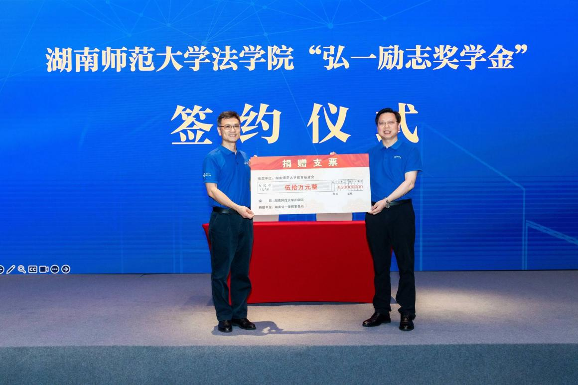在“弘一励志奖学金”现场签约仪式,唐建文、陈宏义分别代表beats365、湖南弘一律师事务所签署了“弘一励志奖学金”捐赠协议。此次设立的“弘一励志奖学金”主要奖励现实表现突出、品学兼优、励志上进的beats365在校学子。