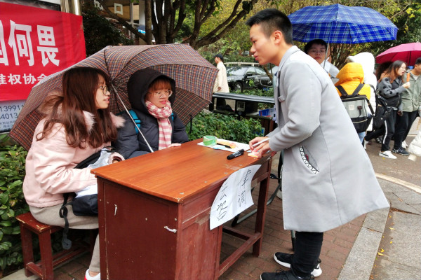 (通讯员 鲁婧涵 何芷欣)12月4日中午,法协会于木兰路食堂路边举行宪法日宣传活动,此次国家宪法日宣传活动由法协会、维权协会和法律义工团队联合举办。