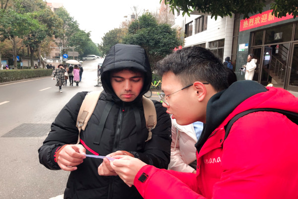 法协会理事于中午提前进行场地布置,用来进行法律咨询和有奖问答游戏、摆放国家宪法日宣传立牌与宪法日寄语立牌等活动。木兰路来往的部分同学前来询问并参与活动。员工可在法律咨询处进行法律咨询并书写宪法日的寄语、在横幅上签名、参与有奖问答。有奖问答题目分为两种:在规定时间内背出抽取的法律条文;在规定时间内用有关法律的字组词,如“宪”“宗”等。有一位国际员工也主动参与宪法日宣传活动,在工作人员的帮助下念出法律条文,并获得活动奖品。