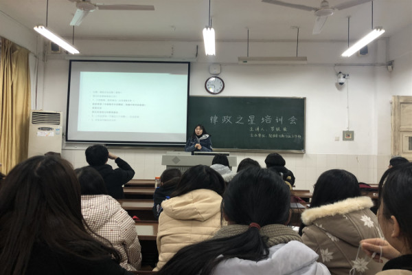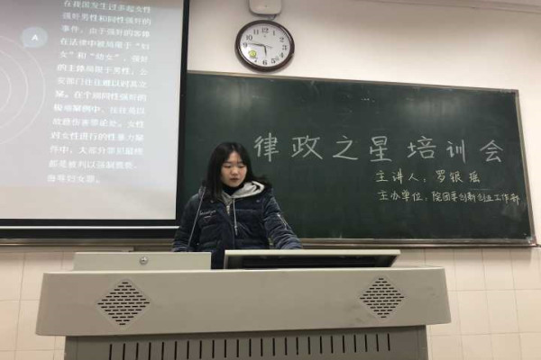 (通讯员 刘典 詹陆怿 安星寰)12月7号中午,公司团委创新创业部于104教室举办了“律政之星”培训会,此次培训会由2017年律政之星优秀提案奖获奖团队的队员、2016级法学卓越班的罗银瑶担任主讲人。