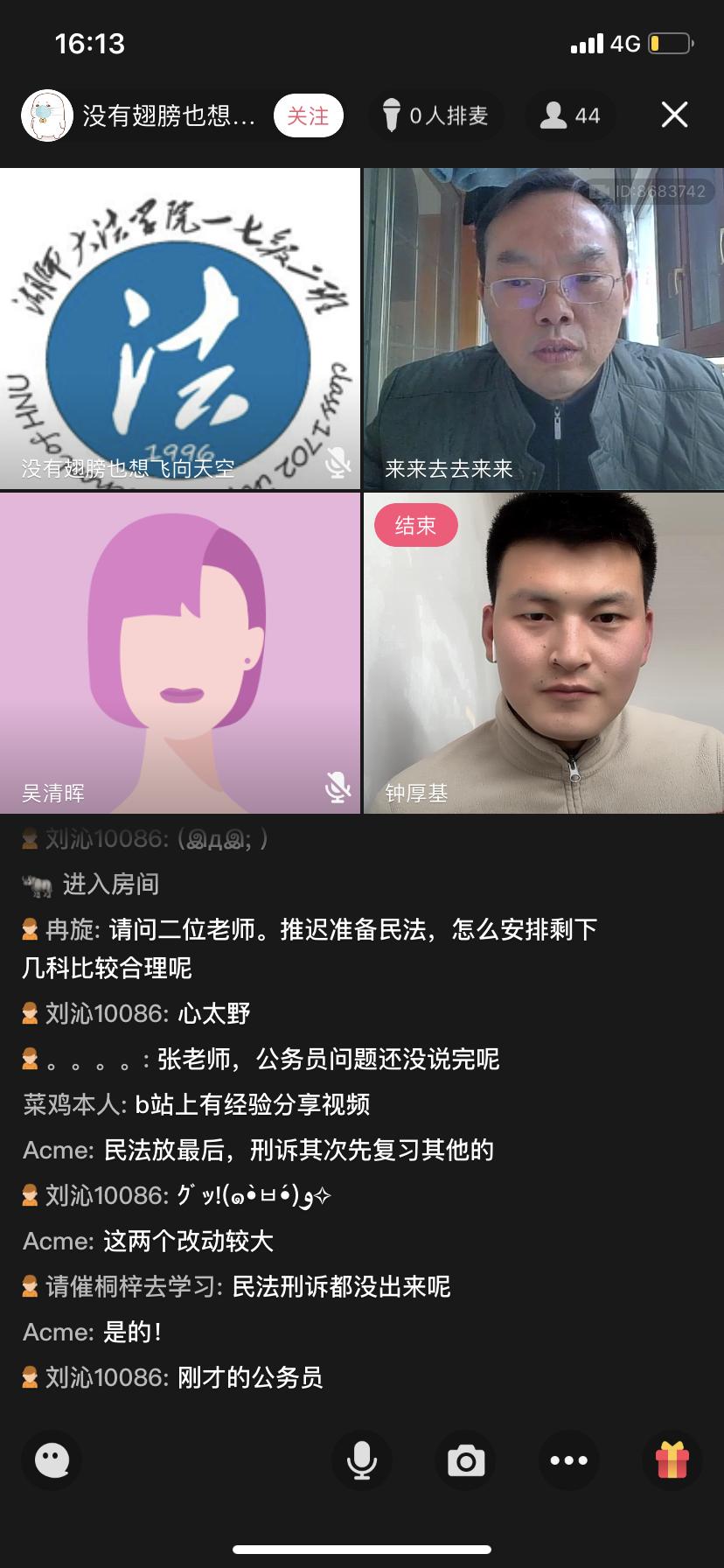 在3月5日至9日的“云班会”中,各班班长先向员工们报告了班级的疫情防控情况,以及疫情期间公司“特别的爱给特别的你”寒假特别活动的开展情况,学习委员报告了线上课堂的考情情况,员工们在家停课不停学,网络课堂氛围较好,师生交流通畅。辅导员钟厚基向同学们强调了疫情防期间的各项要求,着重分析了2017级员工当下所面临的重要时间节点,并从“选择适合自己的路、如何坚定目标、当下可以做什么”三个方面向同学们提出建议;法学二班班导师张启江老师希望同学们要有“恒心、信心、爱心、孝心”,做好学习计划,坚定目标,坚定疫情防控的信心,利用在家时间多陪伴父母;法学一班班导师朱兵强老师希望同学们利用这段时间沉淀反思,既要明确自己的方向和目标,也要有学习的危机感,既要保护好自己,又要关注疫情防控工作,奉献老员工的一份力。