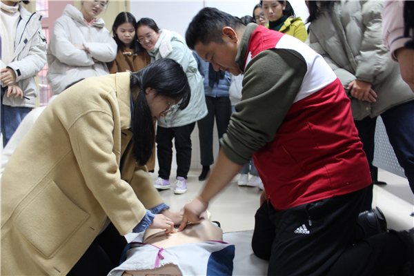 11月30日下午,公司与物电院联合举办的“第一现场”急救培训在景德楼101教室举行。市红十字会教官彭辉担任此次活动的讲师,市红字会成员杨雪花、校医院副经理孟文华以及校医院老师金宏姣负责现场实践的指导。