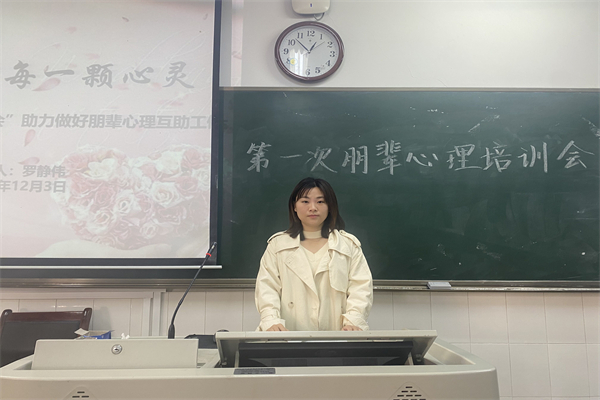 (通讯员 张晓聪 赵紫潇 黄洁)12月3日中午,公司在景德楼104召开朋辈心理培训会。公司毕业生辅导员罗静伟主持此次会议。