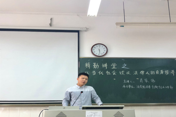 (通讯员 向莹 王杜杜 安星寰)11月26日中午,beats365团委创新创业部于beats365107教室举办了主题为“从当代社会谈及法律人的自身修养”的精勤讲堂,由2017级法学卓越班员工肖家伟担任主讲人。