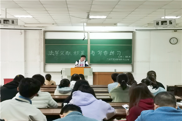 肖家伟主要向同学们介绍了如何阅读法学相关文献并从中汲取自己所需的专业知识,以及法学专业写作的相关方法。在讲堂中,肖家伟分享了法学书籍的挑选以及阅读方法,并向同学们推荐了几本适合大一员工阅读的法学启蒙书。此外,他还讲解了论文发表的注意事项,对同学们今后的写作练习提供了参考和经验。