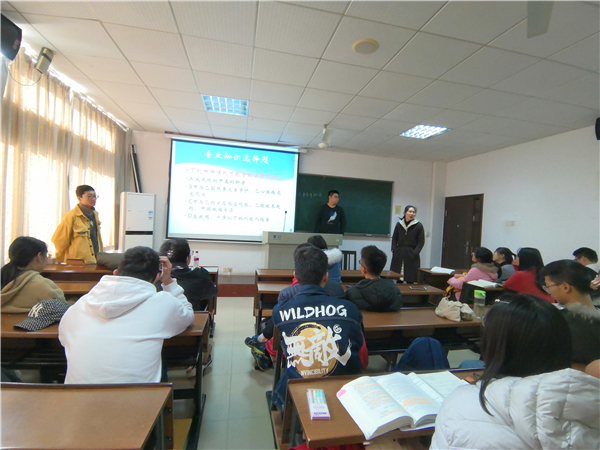 此次知识竞赛以抢答的方式进行,由刘松雨和陶尹玲两位同学在赛前准备题目,现场由陶尹玲提出法理学相关问题,同学们踊跃回答,同时由罗蓉蓉进行专业知识答疑,现场氛围热烈。