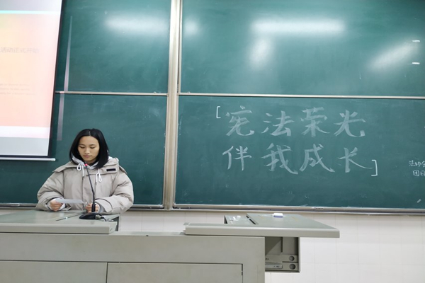 此次团日活动主要由介绍宪法知识、表演情景短剧、开设有奖问答小游戏、唱宪法之歌四个环节构成。汪婷婷向同学们介绍了宪法的发展史和宪法日的由来。法协会的理事们表演了有关宪法的情景短剧。在有奖问答环节中,活动组织者为获胜者发放礼品。微语艺协会理事们以唱宪法之歌结束活动。
