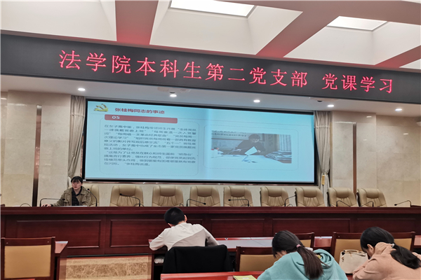 党课由介绍张桂梅同志事迹、呼吁党员学习张桂梅同志的精神及课程总结三个部分组成。任文璐围绕“深入学习张桂梅同志”主题展开了课程学习,她强调,张桂梅同志的行为集中体现了伟大的时代精神和中华民族的传统美德,展现了新时期人民教师的良好形象和共产党员的时代风采,希望全体党员同志能够以先进典型为标杆,结合自身实际,发挥党员的先锋模范作用。