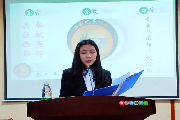 3I协会团支书蒋雯琪、西部发展协会团支书杨晴燕、法协会团支书别淑茜、维权协会团支书杨梦云依次展示了第八届“我的支部我的团”团支部形象设计活动的方案,并介绍了支部建设情况。各社团团支书从支部简介、基础设计、特色设计、宣传互动、回顾展示五个方面介绍与展示了支部成员的学习及活动成果。