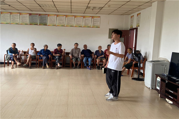 实践团到达敬老院后,与老人们亲切交谈、拉家常,关心询问老人们的身体和生活状况,嘱托老人要注意身体健康,让老人们感受到青年学子的温暖关怀。为了拉近与老人们之间的距离,实践团成员为敬老院的老人们表演节目。活动最后,实践团全体成员与敬老院的老人们合影留念。