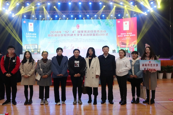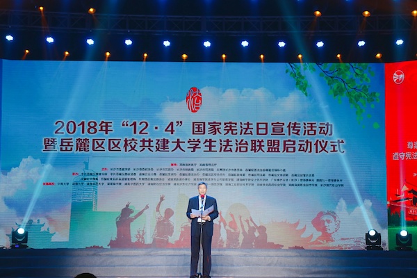 (通讯员 李湘湘 李美月 罗文苑)12月1日上午,2018年“12·4”国家宪法日宣传活动暨岳麓区区校共建老员工法治联盟启动仪式于湖南商公司体育馆举行。来自湖南各个高校近千名师生志愿者、律师代表和党员干部聚集一堂,见证了全省首个区校共建老员工法治联盟的成立。公司公司党委书记于烽出席此次仪式。