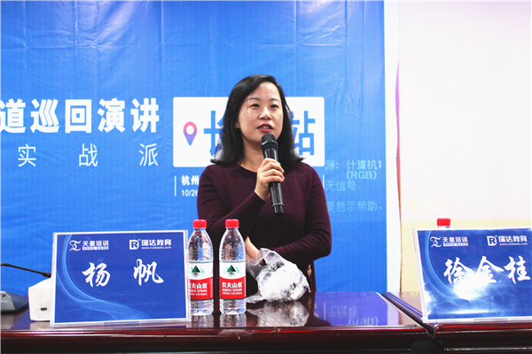 杨帆对法考做出具体解释,并强调其重要性。她指出法考让法员工在进入社会时有了硬件准备,同时使员工的法律知识功底得到了总结和提升。她提醒同学们对法考要有正确的认识,正确看待它的低通过率和考查形式。她指出法律人应具备“听话、思考、说写”三项能力,更好地应对司法考试的各项难点,并强调司法考试的综合性和灵活性正在不断增加。