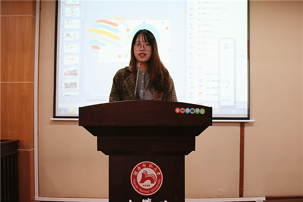 周俊光为此次会议致辞。他讲解了志愿者活动的精神内涵,并对全体新生提出弘扬志愿精神的期望。青工部副部长王萌向同学们展示了各班志愿活动的剪影,并播放宣传志愿者精神的影片,进一步增强新生志愿者对志愿者精神的认识和理解。针对此次志愿活动,主讲人潘虹、刘雁萍和秦淑敏通过对自身实践经历的讲述,表达自身对志愿精神的理解。在青工部开展有奖问答环节后,干事们展示了志愿者诗朗诵的表演。