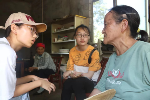 调研团体商议确定访谈对象及调研具体方案后,全体小组成员前往当地村民家进行初步访谈,向当地村民了解有关土地改革、妇女歌和女儿队的相关红色历史法治故事。小组成员向村民说明来意,村民积极参与调研活动,回忆相关历史,对调研工作给予支持与配合。