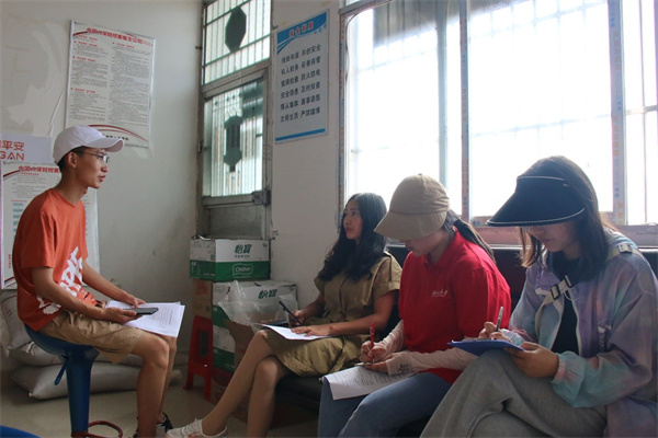 活动伊始,实践团队分为调查组和访谈组两组,分别负责李家湾村的问卷调查和访谈活动,队长陈观华提前确定了此次活动的调查方向和访谈对象。活动过程中,调查组以问卷的形式在李家湾村进行数据收集,收集了二十一份有效的调查问卷,着重调查了村民自治制度、法治意识以及村政府法治建设工作情况。访谈组从社区的纠纷处理、村务公开、法治宣传等角度出发,了解李家湾村的法治建设情况。其中,访谈组对李家湾村副书记张春绒进行了访谈,在提及李家湾村应急地质灾害防治措施时,张春绒分享了自身在防治灾害方面的心得,针对滑坡等地质灾害,提出了铜锣、喇叭、口哨、电话、呐喊、手摇报警器等警报方式,以及时通知村民撤离,并向组员分享了村内的有关地质灾害防治的文件。访谈结束后,访谈组参观了李家湾村的图书馆,了解了李家湾村的文化宣传工作情况。在村民们的积极配合下,实践团的调研工作在李家湾村得以顺利开展。