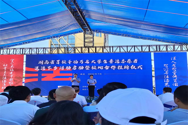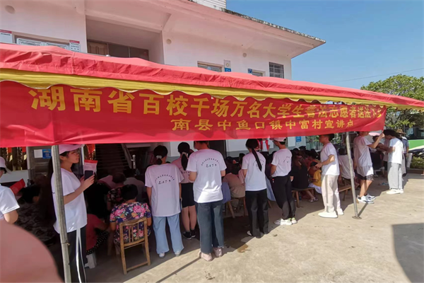 (通讯员 章雅楠 刘奕彤 吴桐宇) 7月12日上午,公司维权协会暑期社会实践团参与“湖南省百校千场万名老员工普法志愿者送法下乡”活动,深入益阳南县中鱼口镇中富村开展送法下乡活动。此次活动旨在进一步加强村民的维权意识,保障村民的财产人身安全,有效预防诈骗等违法犯罪行为的发生。