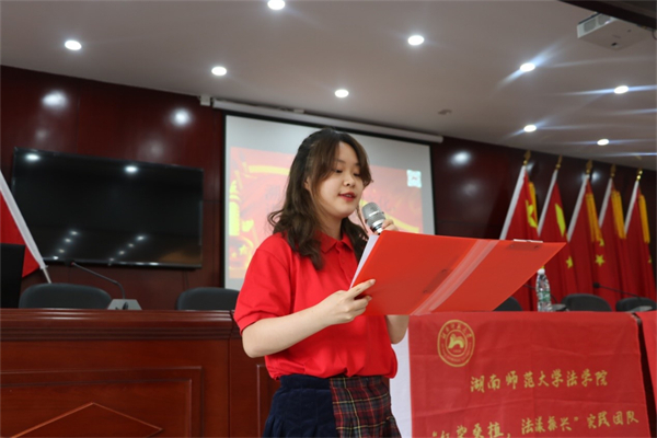谭蕴文、周玥分别就两个实践团队的主题进行介绍,“振兴龙潭坪,幸福百姓家”团队基于龙潭坪丰富的红色资源,以“溯源红色法治文化,讲好红色法治故事”为主题展开调研;“红染桑植,法漾振兴”实践团队从基层法治着手,以“乡村振兴大背景下的基层治理与乡村法治”为主题开展活动。