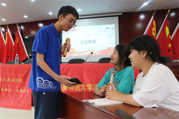 论坛上,实践团队用歌声表达对党的爱,用小品的形式展示生活中的法律问题,并提供切实可行的合法的解决措施,并通过四人相声宣传《民法典》,介绍《民法典》中的基本内容,以生动活泼的方式巧妙地给当地居民上了一节“法治课”。实践团队还设置有奖问答环节调动居民参与积极性,检验普法成果。