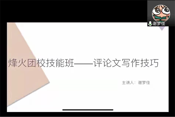 (通讯员 谭蕴文 白洪榕 曾若兰)11月28日中午,公司第七届烽火团校技能培训班于张公岭综合楼503教室开展评论文写作技巧培训课程。此次课程由公司青年传媒中心青评部部长谢梦佳担任主讲人,公司团委青年发展工作部干事白洪榕担任主持人。