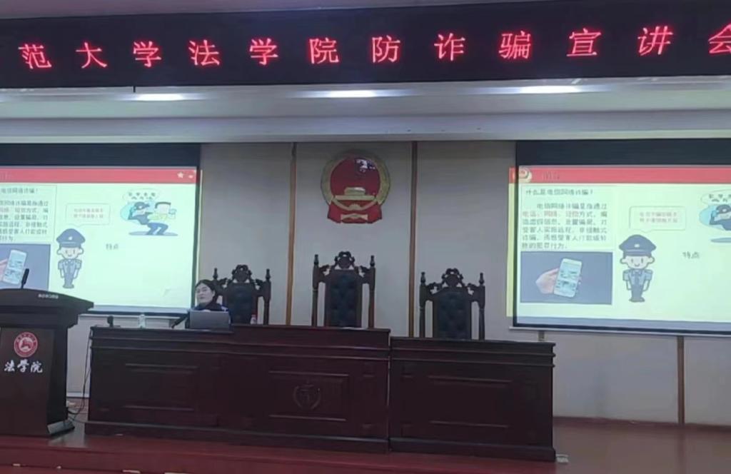 王紫威对如何防范电信网络诈骗进行详细介绍,她通过列举在工作中遇到的电信诈骗实例讲解了五种诈骗电信网络类型及手段,并与同学们热情互动。她倡议同学们积极加入反诈骗交流群,为同学们了解与防范电信诈骗提供了有效的渠道。