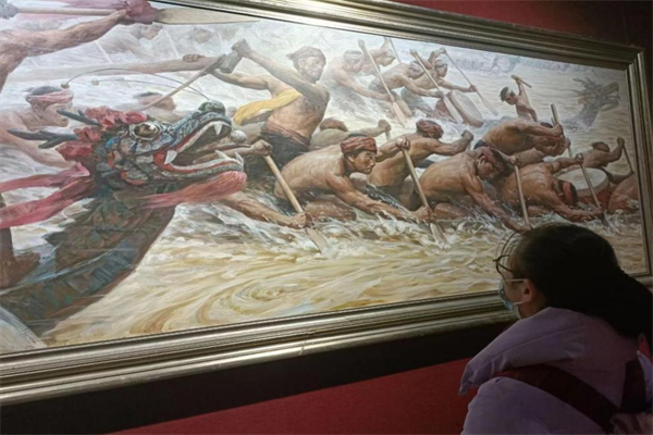 活动开始,由理事向成员们简略介绍了展厅的系列油画作品,再就创作背景、色彩运用两方面详细介绍了画作《南京大屠杀》。随后协会成员们自由活动,一部分成员驻足在油画面前凝神观看,感受油画作品带来的震撼;另一部分成员通过手机拍照的方式记录观看的瞬间。